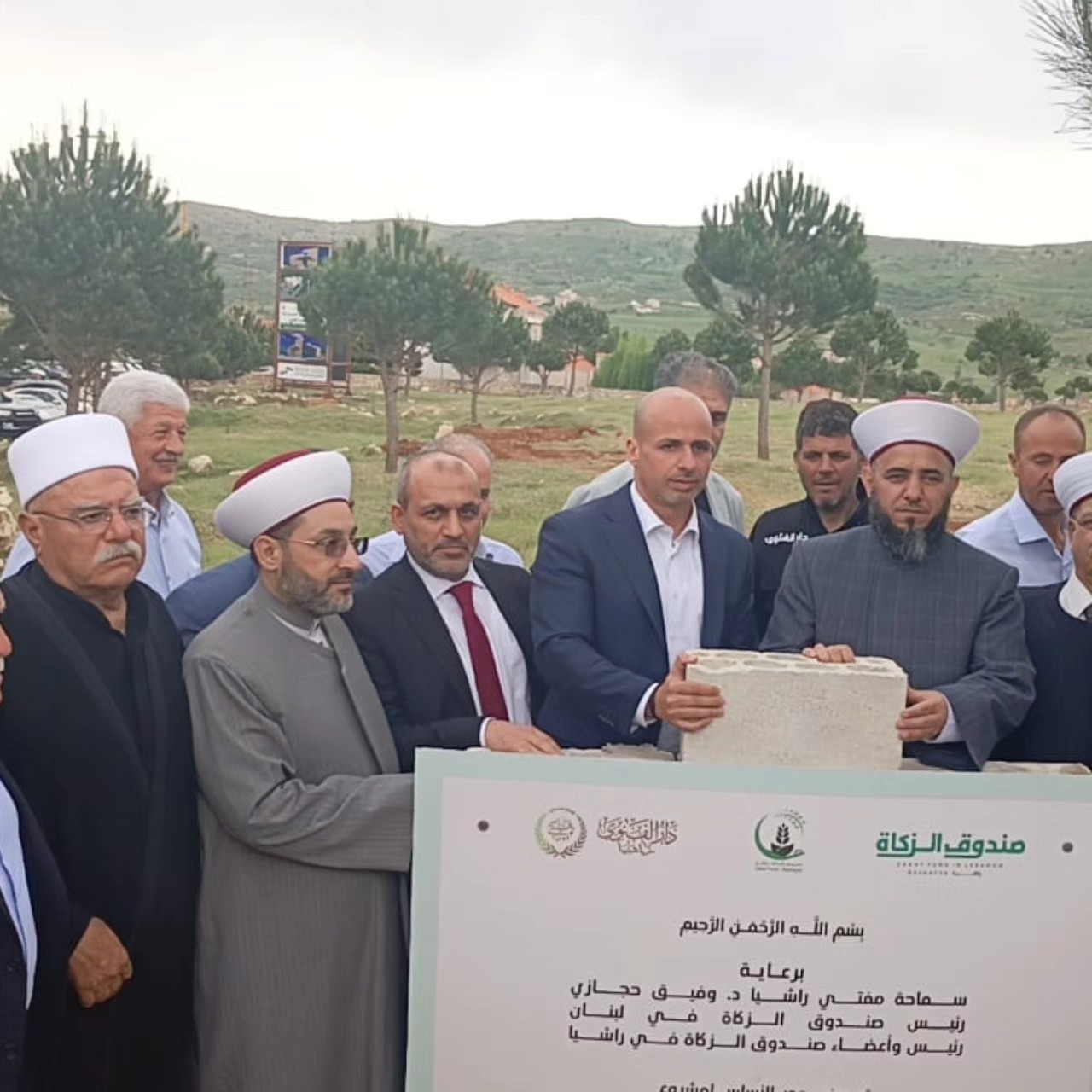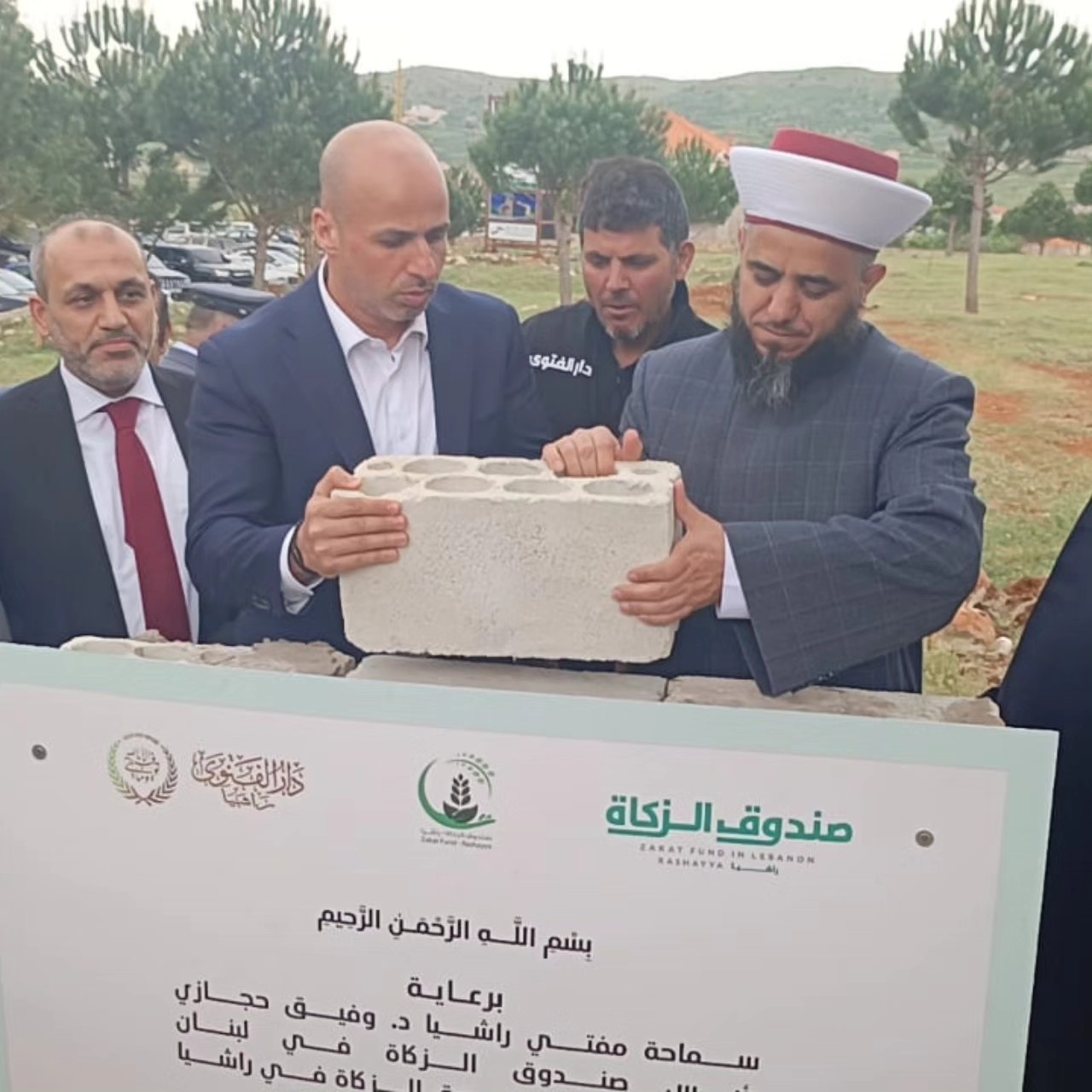 Under the patronage of the Mufti of Rashaya, Sheikh Dr. Wafiq Muhammad Hijazi, the foundation stone was laid for the Dar Al-Shifa Medical Center, which is the first of the service, health, investment, educational and religious projects in the Rashaya district for the Zakat Fund in the region. The ceremony was attended by MP Yassin Yassin, Chairman of the Board of Trustees of the Zakat Fund in Lebanon, Consul Muhammad Ibrahim Al-Jawzo, Director General Sheikh Zuhair Kabi, a group of scholars and clerics, and a number of politicians, dignitaries and figures from the region.