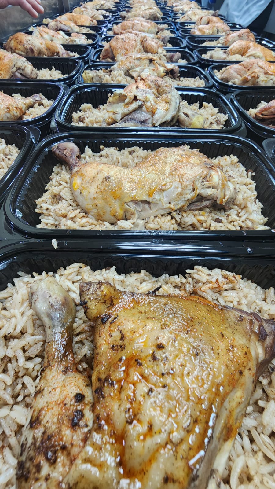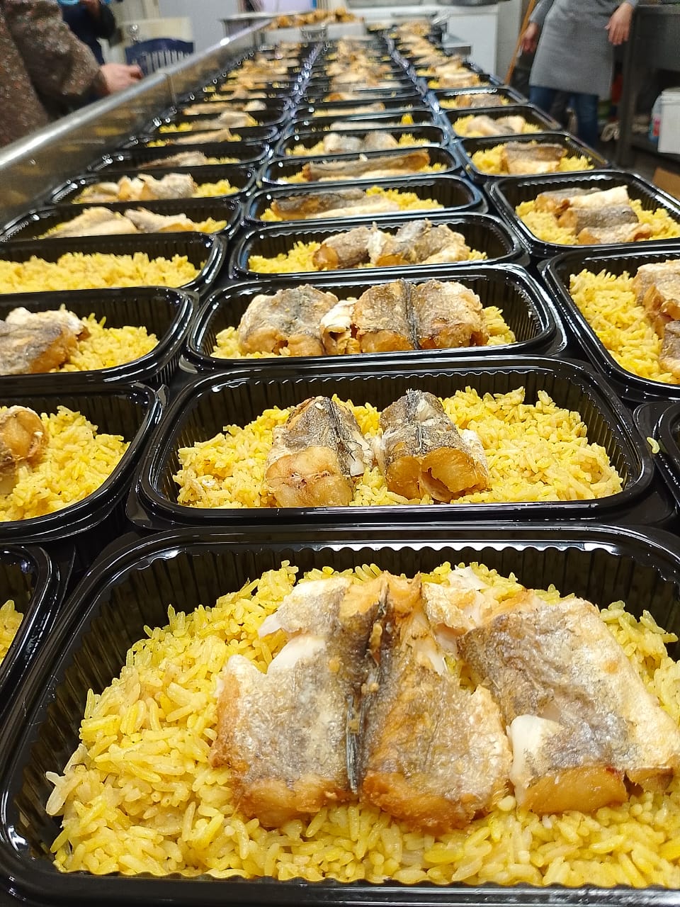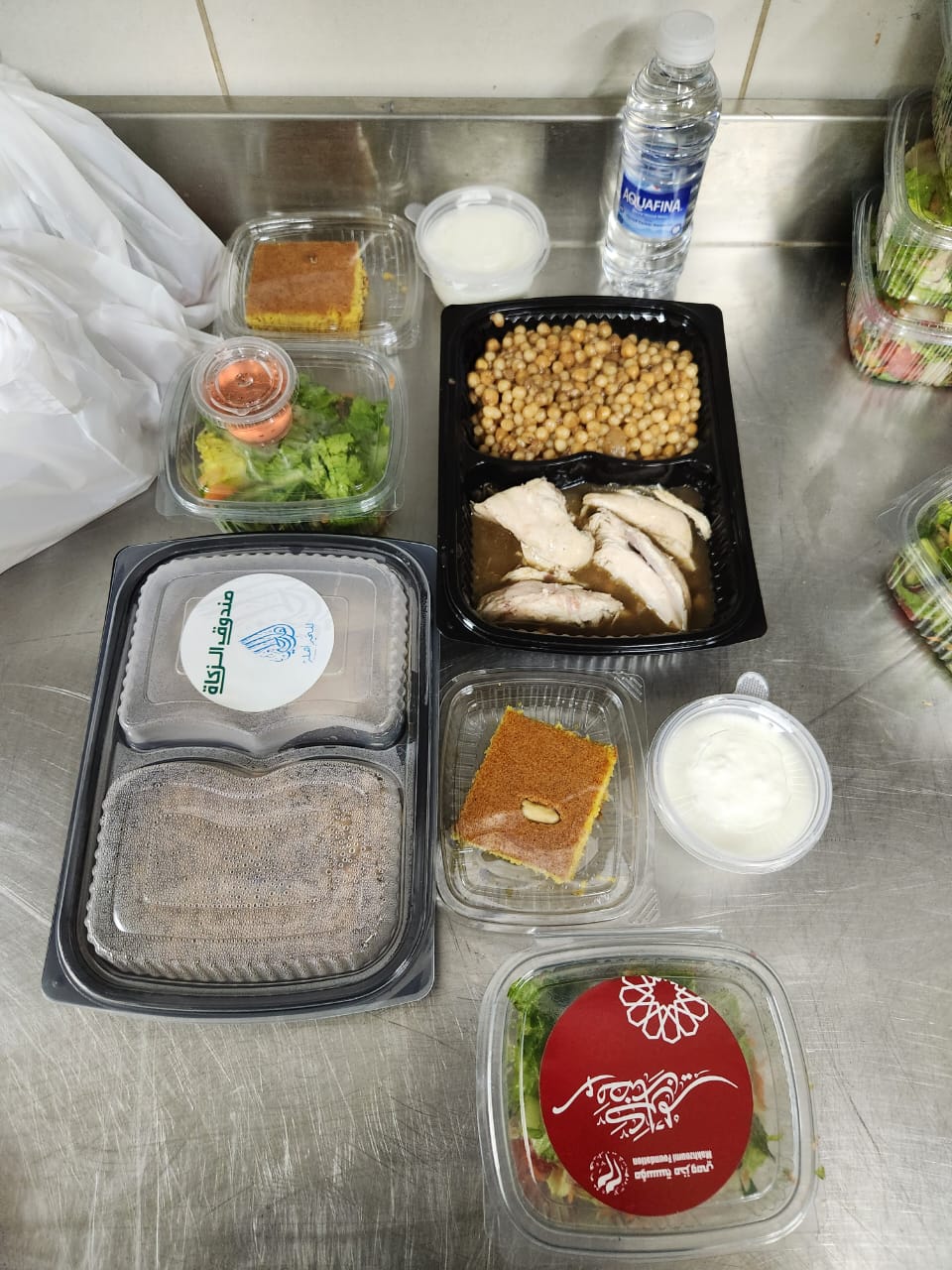 كما يتم توزيع الوجبات الباردة المكونة من: 6 قطع همبرغر، مع 6 قطع خبز، نصف كيلو ناغتس، رقاقات، 2 كلغ بطاطا، ليتر زيت نباتي، ملفوفة،كاتشب، عصير بودرة، مغلفان شوربة، مايونيز، 6 حبات تمر)